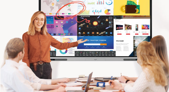 Die auf Android basierende integrierte Multi-Touch-Software erleichtert Nutzern die Durchführung von Unterricht und Meetings, indem sie eine einfache und komfortable Bedienung ermöglicht.