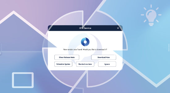 Die OTA Service App unterstützt die Aktualisierung des Smartboards ganz einfach über das Netzwerk.